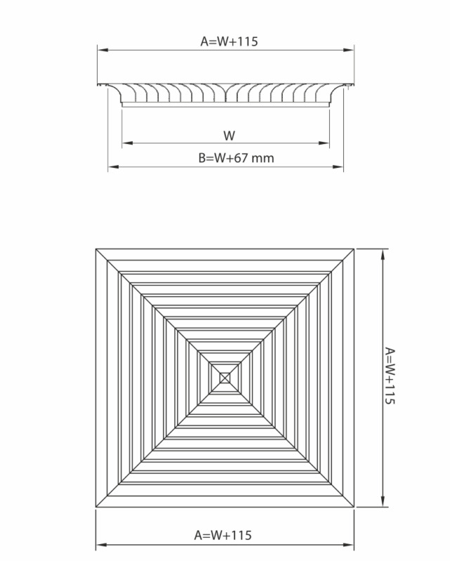 Removable internal blade construction means it’s easily installed and access to the plenum box is facilitated. An optional damper can be attached for regulation. The casing and the blades of square ceiling diffusers are made from aluminium and only 1st class aluminium profiles are used.