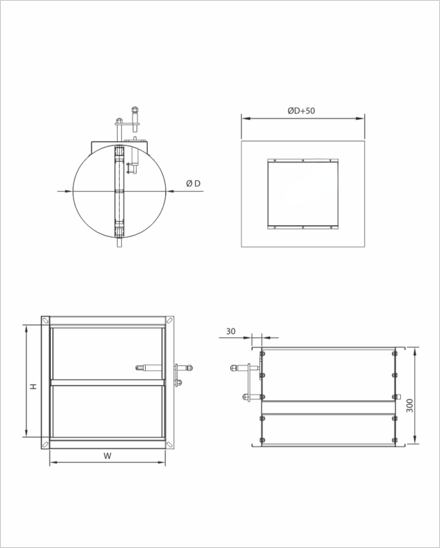 Rectangular Fire Damper and Circular Fire Damper Series Prismatic and circular Fire Dampers are used in air ducts in order to prevent spreading of the fire to other localities. Fire dampers consists of three main components. These parts are in turn casing and blade manufactured from galvanized sheet metal having TS EN 10346 certification and a protection fuse that becomes activated at 72C. The bearing bushing in the fire damper that acts as a jack valve is made from brass and the shaft that turns in the bearing is made from galvanized steel. This ensures longevity of the system and deformation of the material. In order to ensure a good seal in the casing joints high heat resistant red silicone is used. In addition to the fuse a servo-motor can also be incorporated to allow intervention. The servo-motor used is a 24V 240V motor. As an option the servo-motors can be equipped with thermal components. Servo-motor equipped fire dampers can be connected to the automation system for better control.