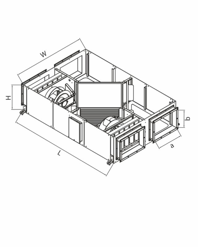 Carier frame is manufactured from double wall 1,00 mm thick galvanized steel sheet and there is acoustic insulation with 35 mm thickness inside the device. Self-motorized, quiet, single-phased (230V) and speed controllable, imported plug fans are used. In our heat recovery devices, heat exchanger with % 45-60