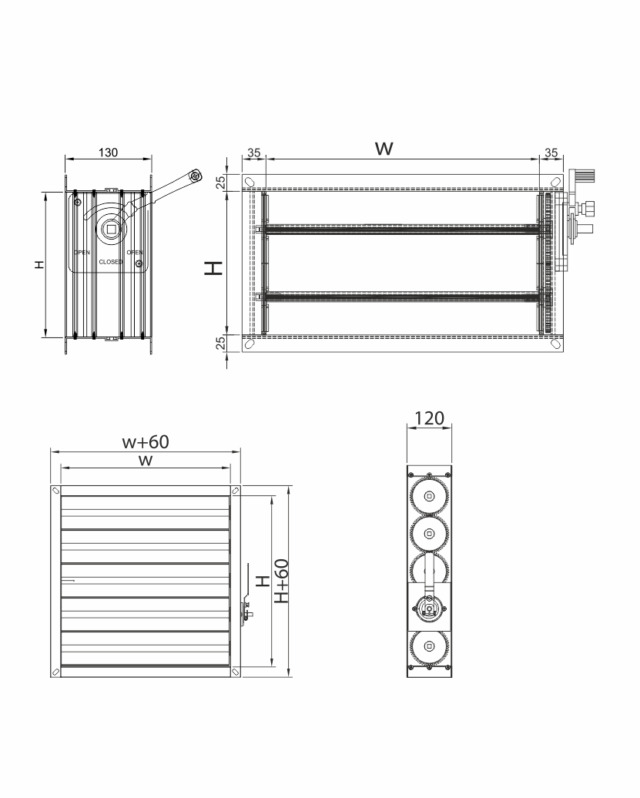 HDHD-A and HDHD-B Series volume control dampers are used in air ducts to control air volume. As a result of the mechanism employed the blades work in opposite directions. Manually controlled volume dampers are adjusted manually to the air volume requires and the locking mechanism on the handle is used to maintain the specified level of air. On request, they can be manufactured to incorporate 24V and 240V servo-motor control. Externally driven gear manufactured from plastic injection method is used as standard. Where plastic gears cannot be used, special bronze bearing bears can be manufactured.